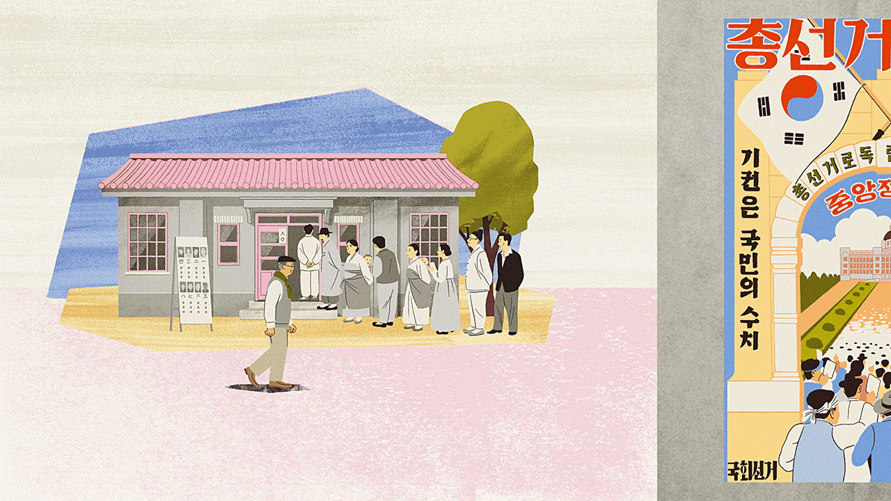 화사한 색감을 활용해, 대한민국의 민주주의가 탄탄히 뿌리 내리는 것에