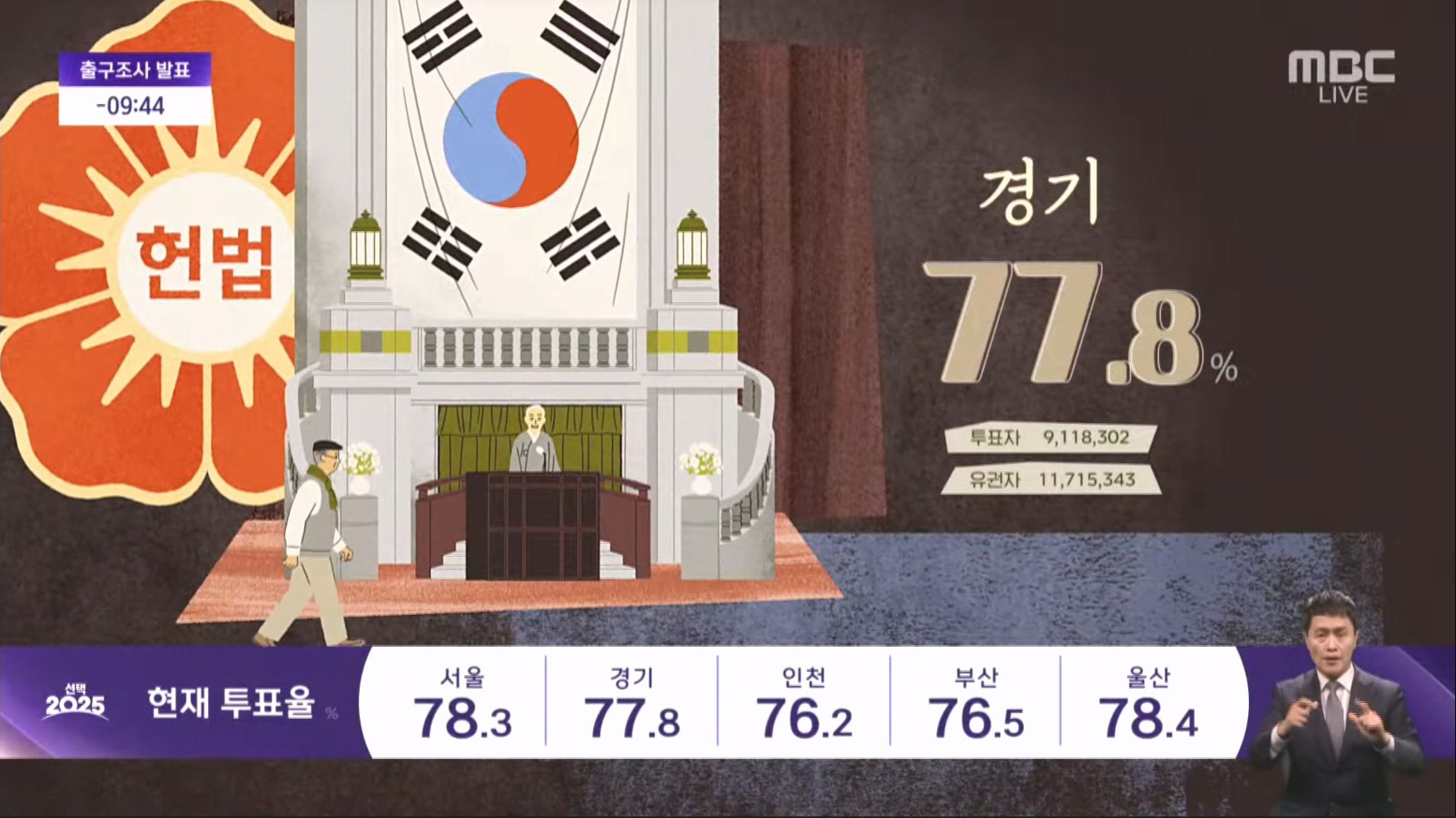 투표소 가는 길은 실시간 지역별 투표 데이터를 보여주며 대한민국 민주주의의 역사를 되짚는 영상입니다.